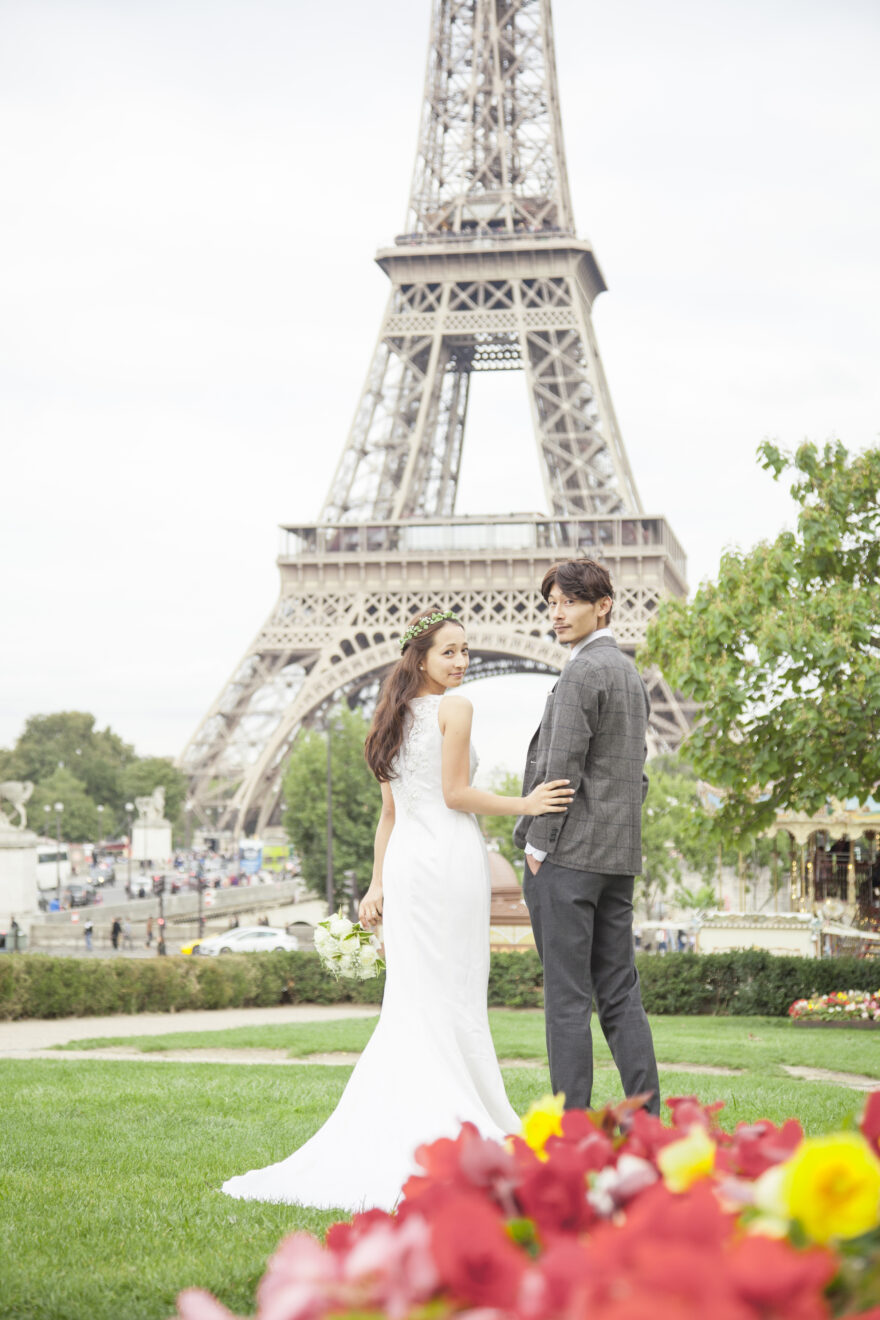 エッフェル塔の芝生でウェディングフォト♡