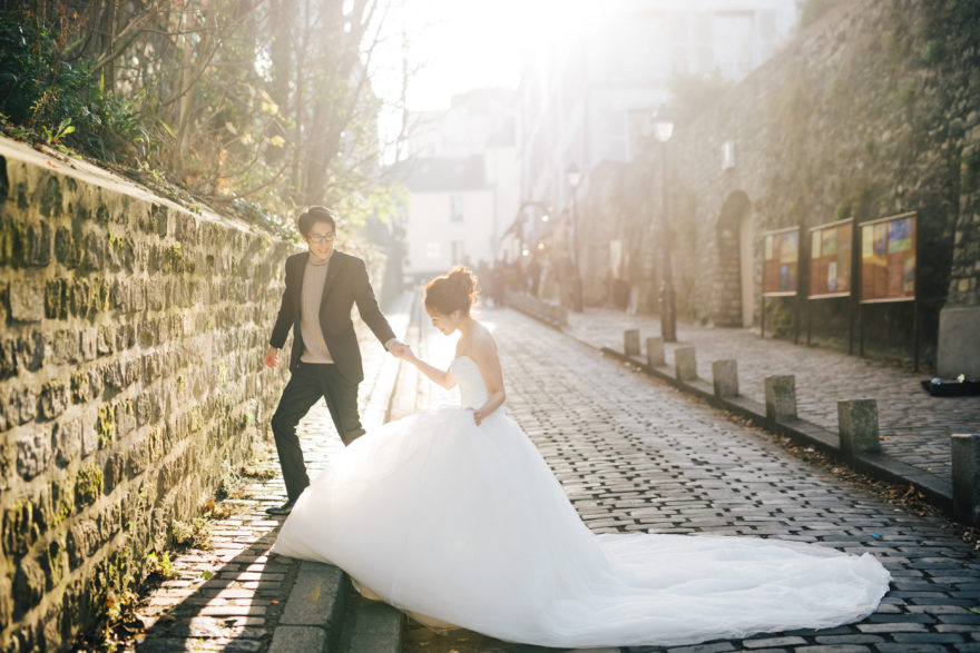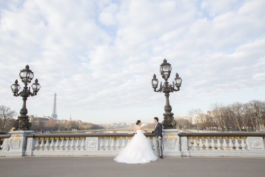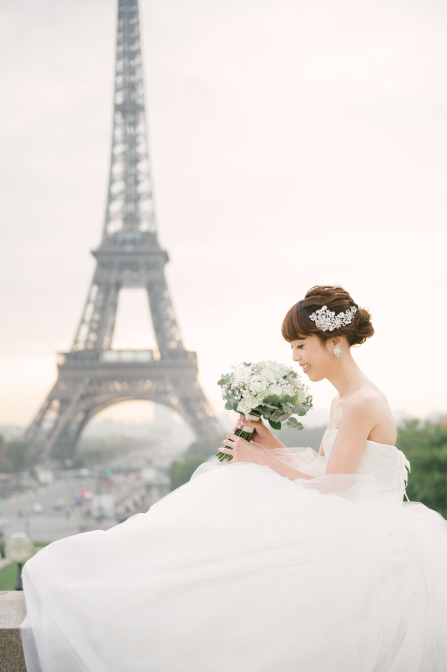 エッフェル塔&シャイヨー宮の階段でハネムーンフォト