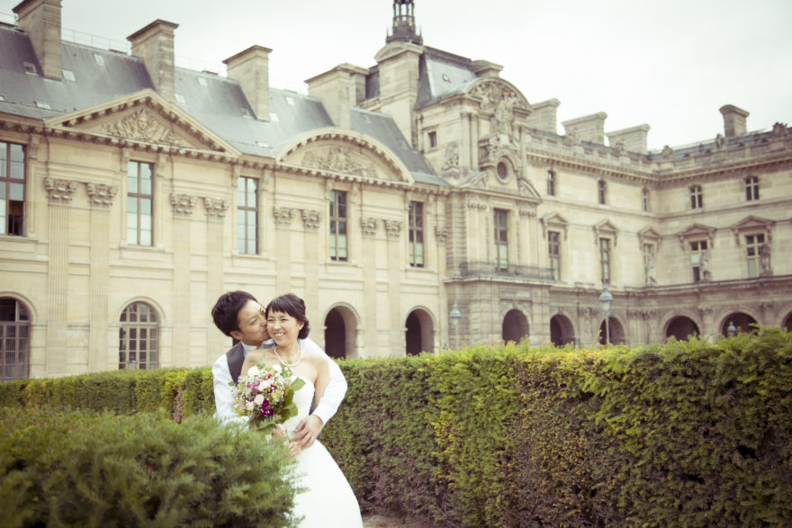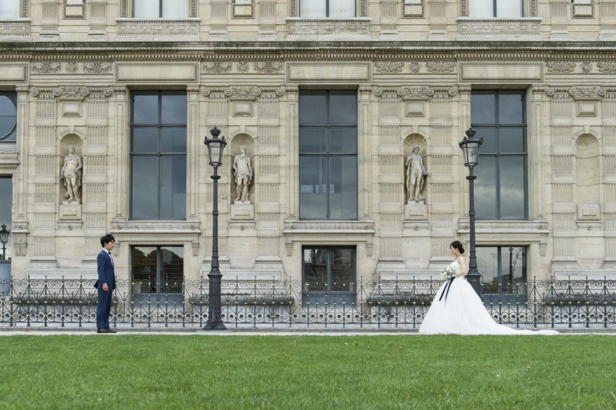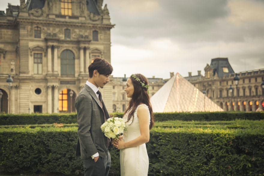 ルーヴル美術館でクラシカルなパリウェディングフォト