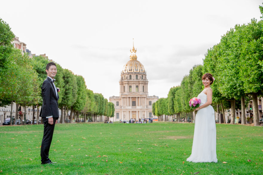 アンヴァリッドの公園でハネムーンフォト